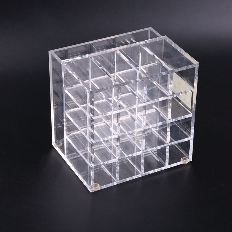產(chǎn)品描述:亞克力制成的收納盒,采用透光性高達(dá)96%的材料,外觀晶瑩剔透,能全方位的展示口紅的色澤,造型新穎大方,能夠多產(chǎn)品集中展示。