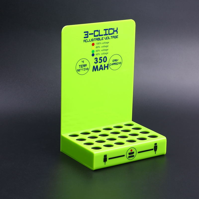 產品描述:亞克力電子煙展示架,適合擺放通用的電子煙、電子煙電池、鋼筆等,采用亮麗的顏色以及時髦的設計,外觀優美、結構牢固、運輸方便。且展示架風格優美,又有良好的裝飾效果,展示架使產品發揮出不同凡響的魅力。加上具有創意的LOGO標牌,使您的產品醒目的展現在公眾面前,從而加大對產品的宣傳廣告作用,方便顧客選擇更適合自己的商品。