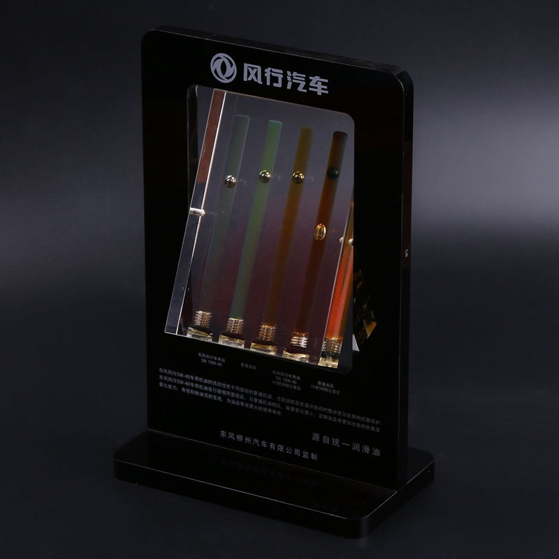產(chǎn)品描述:亞克力機油展示架,采用透光性高達96%的亞克力為原材料,清晰、透亮,顧客通過內(nèi)置的鐵球,能夠清晰直觀的觀察機油色澤以及潤滑程度,我們也可以為您定制各類的形狀以及圖案(Logo、二維碼等),向客戶全方位的展示您的公司或個人信息。
