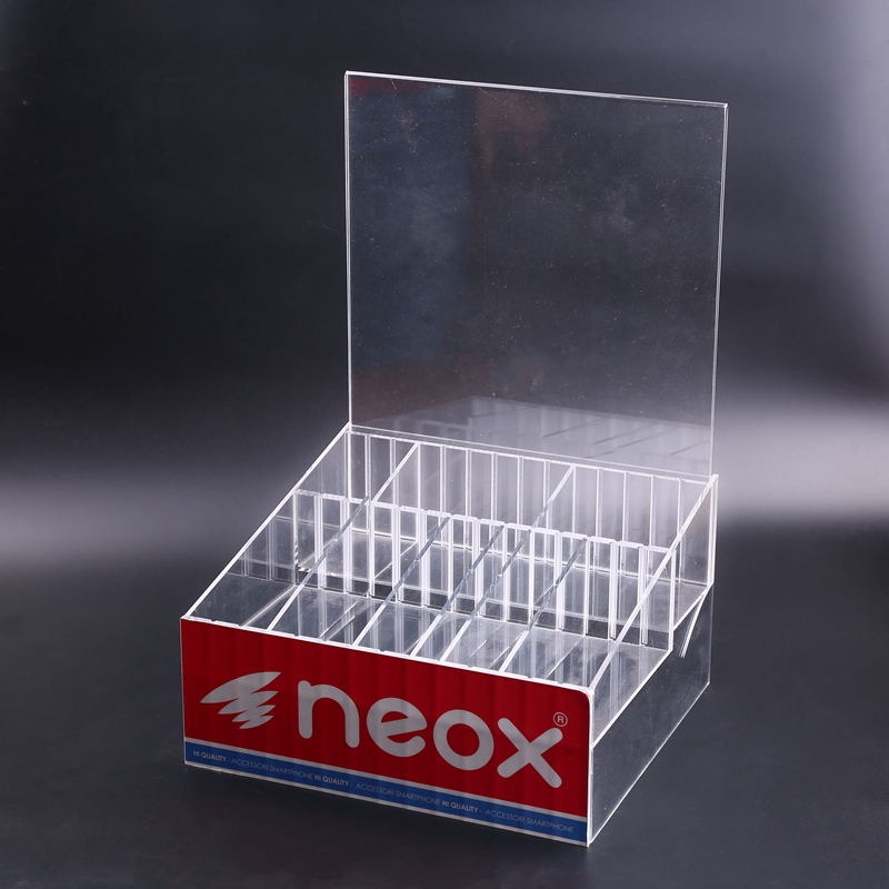 產品描述:亞克力制成的收納盒,采用透光性高達96%的材料,外觀晶瑩剔透,造型新穎大方,能夠多產品集中展示。